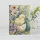 Cute Easter Chick Spring Wildflowers Watercolor Holiday Card