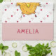 Cute Easter Chick with Eggshell Heart Happy Easter kitchen towel. Cute Easter chick with cracked eggshell on the head. The background is a cute red heart pattern. Add your name.