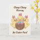 Add a splash of Easter delight to your celebrations with our charming Easter card featuring three adorable chicks eagerly huddling around a large Easter egg.
