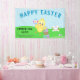 Get ready for an Easter egg hunt with this cute banner featuring a sunny day background. A baby chick looks for Easter eggs and a bunny pops his head out to see what all the fuss is about. Personalise this banner with your information by clicking the customisation button to the right of the picture.