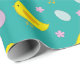 Cute Easter Eggs Chicks Spring Pattern Teal green Wrapping Paper