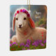 Cute easter lamb with flowers - easter ceramic ornament