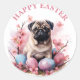Cute Easter Pug Chocolate Eggs and Flowers - Classic Round Sticker