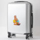The stick looks amazing. Unfortunately, it would not stick on our suitcase as it was textured. When we found a non-textured (smooth) suitcase, the sticker stuck and looks great. The printing looked awesome.