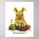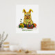 Cute Easter Rabbit with Eggs and Flowers Poster