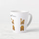 Three cute little Easter rabbits are looking at you from the surface of the Latte Mug, together with the words "Happy Easter". You can easily replace the words with words that you prefer. You can also easily change the white background to any colour you like.