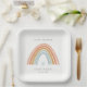 Cute Elegant Blush Blue Heart Rainbow Baby Shower Paper Plate