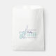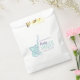 Cute baby shower candy, cake or gift bag, featuring a cute elephant blowing heart shaped bubbles. Pretty baby boy aqua mauve blue shower favour bag with a cute lucky elephant. Personalise with your baby shower details. Uniquely illustrated and designed by Sarah Trett. Ideal to fill with sweets you show your appreciation. Original design by Sarah Trett.