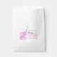 Cute baby shower candy, cake or gift bag, featuring a cute elephant blowing heart shaped bubbles. Pretty pink baby girl shower favour bag with a cute lucky elephant. Personalise with your baby shower details. Uniquely illustrated and designed by Sarah Trett. Ideal to fill with sweets you show your appreciation. Original design by Sarah Trett.
