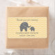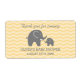 Cute yellow and grey elephant baby shower water bottle stickers. Custom babyshower water bottle labels with zoo animal design and chevron pattern background. Personalised elegant DIY waterbottle sticker template. Stylish script typography for name and birth date of baby girl or boy. Use as classy table decoration or thank you for coming party favour for guests. Gender neutral zigzag design with customisable background colour. ie pastel blue, pink, grey or soft yellow. Zig zag stripe print.