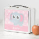 A cute baby elephant spouting tiny pink hearts from its trunk. Polka dots pattern background. Personalise with child's name.