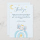 Announce the joy of a little one on the way with our adorable Baby Elephant Baby Shower Invitation. Against a soothing light blue background, a charming baby elephant stands atop a rainbow, accompanied by a crescent moon and stars, creating a whimsical and heartwarming scene.