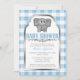 Cute Elephant Blue Gingham Baby Shower Invitations
