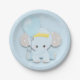 Cute Elephant Blue Stars Boy Baby Shower Paper Plate