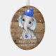 Create a keepsake for a baby boy's First Christmas with this cute, sweet baby boy elephant with a blue stocking cap holding a Christmas tree ornament against a rustic wood background and snowfall with the title MY FIRST CHRISTMAS. Personalize with his name and year on the front and a full-bleed photo on the back. ASSISTANCE: For help with design modification or personalization, color change, resizing, transferring the design to another product or if you would like coordinating items, contact the designer BEFORE ORDERING via the Zazzle Chat MESSAGE tab or email makeitaboutyoustore@gmail.com.