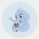 Sticker with design with an illustration of a blue elephant with a brown mouse; illustrated by Radka Kavalcova / MaxiHarmony