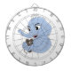 Dart Board with design with an illustration of a blue elephant with a brown mouse; illustrated by Radka Kavalcova / MaxiHarmony