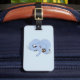 Luggage Tag with design with an illustration of a blue elephant with a brown mouse; illustrated by Radka Kavalcova / MaxiHarmony