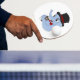 Ping Pong /addle with design with design with an illustration of a blue elephant with a top hat and a brown mouse; illustrated by Radka Kavalcova / MaxiHarmony