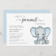 A cute baby boy couples shower invitation featuring "A Sweet Little Peanut Is On His Way" in soft grey typography and a stylish swash script and a pastel blue watercolor of a baby boy elephant. Add the names of the mother and father and shower details in simple modern grey typography.