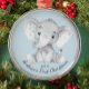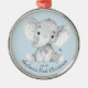 Adorable grayscale elephant set on a light blue background for baby's 1st Christmas.
