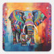 Cute Elephant Colourful Funky Mixed Media Animal Square Sticker