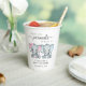Cute paper cups for your girl and boy twins baby shower with "Two Sweet Little Peanuts Are On Their Way" in grey typography and script and watercolors of pink and blue twin baby elephants. Personalise the mother-to-be's name and shower date in simple grey typography.