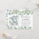 Cute Elephant Greenery Eucalyptus Birthday Invitation