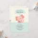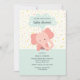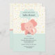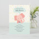 A sweet, pink, baby elephant is featured in front of a white, speckled background with a light green base. Perfect for a baby shower or a toddler's birthday. (FP)