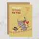 Happy Birthday, Card for your little one on the yellow background. It features a cute Elephant , mouse and owl marching on the Bunting Flags.. All text can be easily adjusted to your liking. Add your Child's Name. This Design was hand-painted.