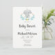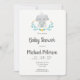 Neutral baby shower invitation card with cute elephant illustration. Find matching products in our shop or contact us.