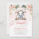Get ready for the cutest baby shower ever! Picture this: a charming invitation featuring a cute elephant swinging among blush roses and lush greenery, setting the perfect tone for an adorable girl baby shower party. The whimsical design captures the essence of playful adventure, making it a standout choice to set the mood for the celebration. With its sweet and stylish appeal, this invitation promises a delightful gathering filled with love and joy for the soon-to-arrive little one. Get ready for a shower that will be as enchanting as this invitation itself!