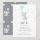 Cute Elephant One 1st Birthday Party Invitation