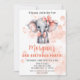 Cute elephant peach birthday invitation for a fun vibe girl birthday party digital download or printable invitation. Customise names, dates, and information.