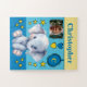 Cute elephant photo name blue yellow kids jigsaw puzzle