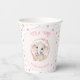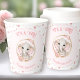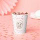 Cute paper cups with a baby elephant girl and flowers, soft pastel pink and beige ''golden'' colours, beautiful, cute and elegant design that is so adorable for a baby girl's baby shower. Easily personalise the text. Great for a lovely baby girl shower party all year round. - Kate Eden Art