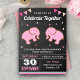 Amaze your guests with this twins birthday party invite featuring adorable little elephants with vibrant elements against a chalkboard background. Simply add your event details on this easy-to-use template to make it a one-of-a-kind invitation. Flip the card over to reveal an elegant pink and white stripes pattern on the back of the card.