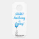 Super cute door hanger lets everyone know that baby is sleeping! Has a cute elephant holding a blue heart shaped balloon with your baby's name in blue.