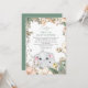 Jungle cuteness to invite guests to join your virtual baby shower for when you can’t be together in person.This design has a cute mum and baby elephant with florals and foliage and easily personalised text. A coordinating sage green background is on the back. You can also change the fonts and text colours if you wish via the Click to Customise Further option as well as the background colours of either side.
