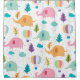 Cute colourful cartoon elephants with hot-air balloons and leaves seamless pattern.
