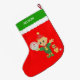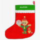 Cute elf on red Christmas stocking. Christmas is a wonderful time with Santa Claus, elves, angels and fairies. Merry Christmas!