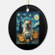 Cute English Bulldog Dog Halloween Jack O Lantern Pumpkin Face Starry Night Van Gogh Style