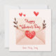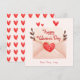 Valentine's day greeting card featuring a cute watercolor envelope with happy valentine's day wishes on the front and a pattern of red hearts on the back. Check out our store for more items from this collection.
