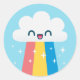 Cute Excited Rainbow Cloud with Sparkles Classic Round Sticker