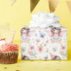 A cute fairy wearing a birthday party hat with flowers and butterflies makes a fun gift wrap suitable for children. AI assisted graphic purchased with commercial use. Artwork: DreamCafeArt