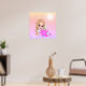 Cute fairy elf with daisy flower and monogram on pink shades background. Ideal for nursery, kids room and more.