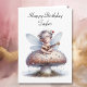 Personalised Birthday Card with a cute little fairy sitting on top of a mushroom with raindrops playing the ukulele.