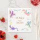 Oh baby! Little dragon about to hatch? the perfect way to celebrate the new baby on the way with a fairytale dragon themed baby shower. Perfect for a boy or girl baby shower, design features a warm beige background with flying dragons fly around clouds and stars, Personalise this baby shower invitation by adding names, date, time, venue and other details.
