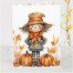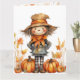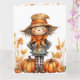 Cute Fall Autumn Scarecrow with Pumpkin and Leaves Card