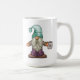 Cute fall gnome with big nose and turquoise hat with coffee mug.